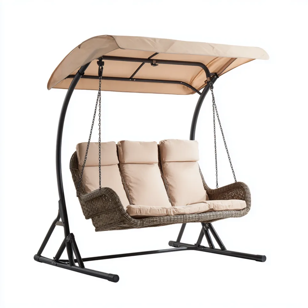 Gartenschaukel Rattan Kombination 200x120x164 cm - Beige - mit Sonnenschutz
