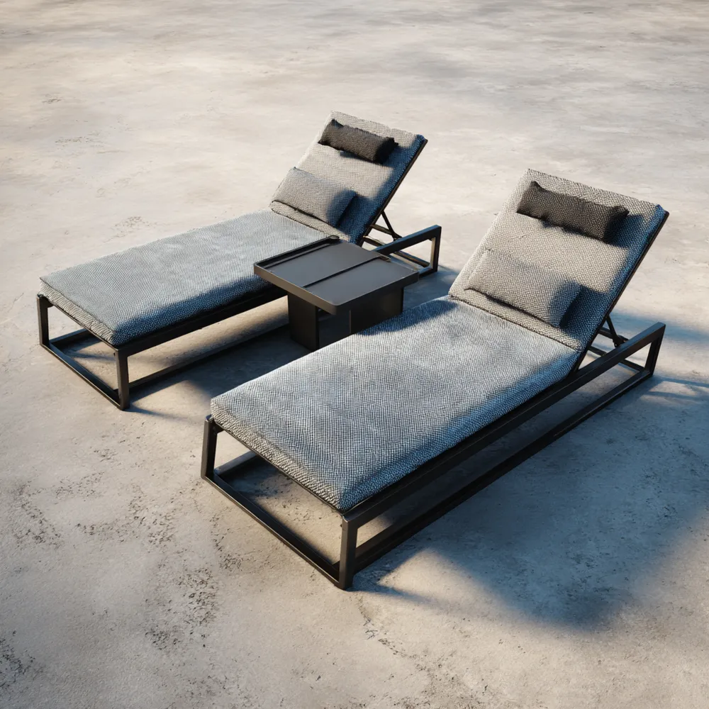 Doppel-Liege mit Tisch 200x70x35 cm Metallrahmen Grau für Garten