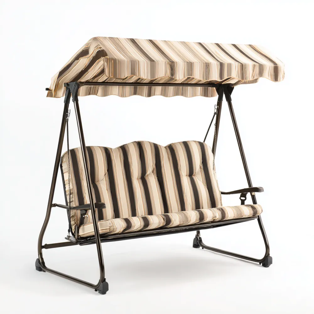 Gartenschaukel Metallgestell 3-Sitzer 210x140x160 cm Streifenmuster Braun/Beige