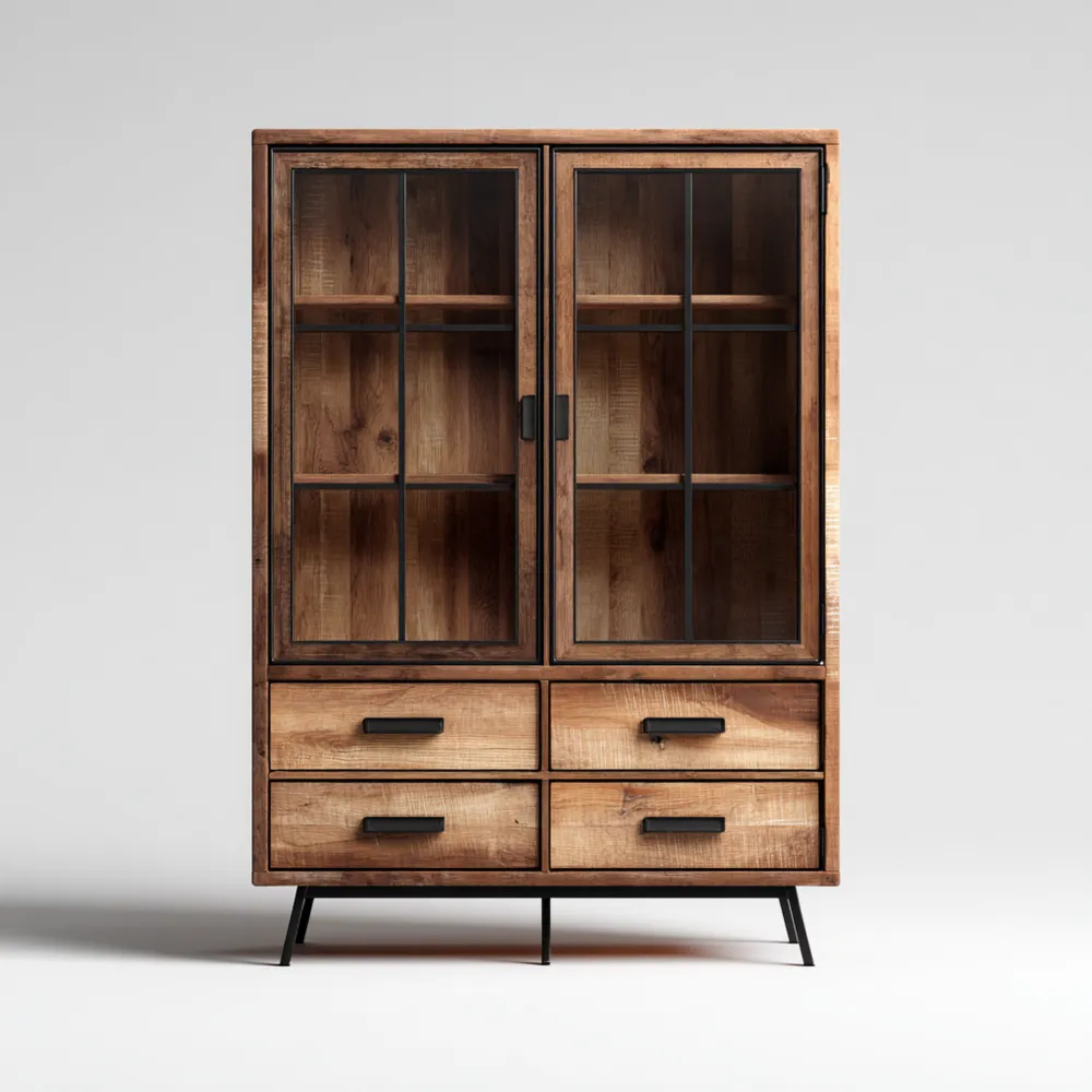 Industrielle Vitrine Holz 200x100x40 cm - Braun