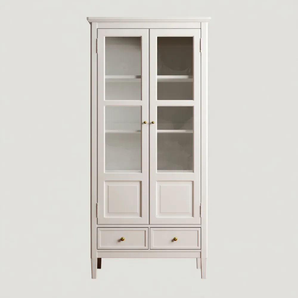 Vitrinenschrank Holz 90x40x180 cm – Weiß – Klassisches Design